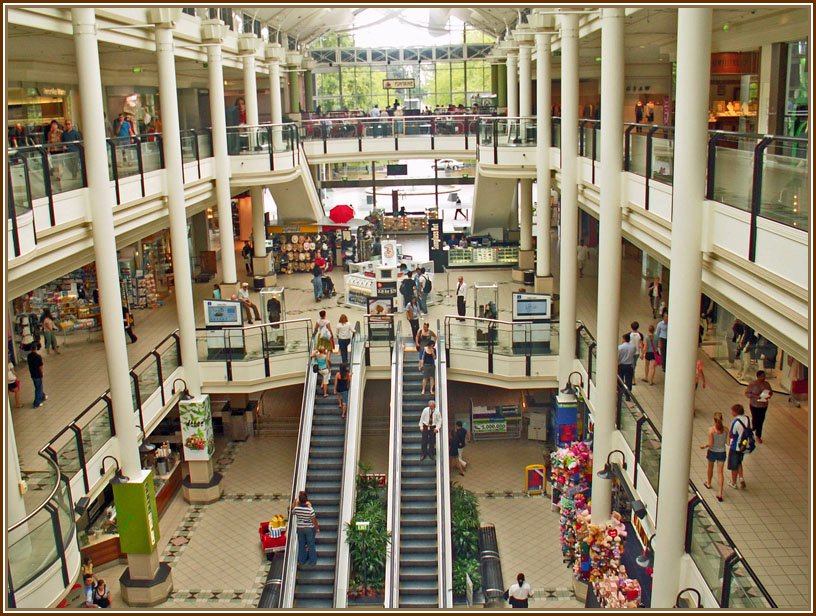 Indeed with such a wealth of attractive facilities so readily available, residents find that less time is now spent in the home itself, mainly because there is so much going on around it. The numerous facilities inside the hilltown in and around the Atrium, the roof top promenade areas and the beckoning countryside provide plenty of incentive to be “out and about”. The highly compact nature of the hilltown’s design and its consequently small “footprint”, space can be devoted around the hilltown for market gardening (pick your own fruits and vegs!), formal and informal parkland, recreational facilities for young and less-young, walking-jogging-cycling tracks and so on. Indeed the immediate countryside offers a thoughtfully planned selection of facilities. Access to the ‘great outdoors’ could not be simpler for the hilltown residents. Periodic breaks in the housing units allow for public top-to-bottom walkways winding through treed and landscapes slopes. Or for quicker access the sloping elevators terminate at the base of the hilltown permitting direct walk-out into the surrounding parkland. By its very nature and concept, this is a very compact town; there is no suburban sprawl gradually eating its way across those ‘greenfield sites’ so much beloved of developers! This hilltown resembles the old fortified towns of medieval times: town on one side of the city wall, open country on the other! The extensive park area immediately surrounding the hilltown is laid out semi-formally for quiet relaxation, where people can be seen strolling along the paths enjoying the trees, the green grass and profusion of colourful scented flowers. In one area several rows of chairs are grouped in front of an old-style Victorian bandstand screened by trees at its rear. An announcement states that a local youth orchestra will perform “for your pleasure” during the afternoon. A stroll can often lead to a small pavilion, perhaps offering a café, sport facility or garden and plant centre. At its outer edges the semi-cultivated and formally planned Town Park gives way to wedges of informal parkland alternating with market-gardening agriculture. There is quite a choice of footpaths leading off into the “real” countryside, each one having a small signpost showing its destination, distance and walking time; some of the paths are designed as circular routes, again with walking times given for the circuit. Walking has become a favourite leisure activity with residents, particularly as there is so much beautiful countryside to enjoy right on one's doorstep. A popular outing is to walk to the next village or scenic spot, perhaps enjoy some light refreshment then return home by one of the new Rural Lines that fan out from the hilltown. The Atrium which forms the centre One can take a leisurely stroll around the perimeter, pausing to watch the passing scene in one of the many sidewalk cafés or benches set in alcoves among flowering bushes. The beautifully tiled floors and surfaces, alcoves with small sitting areas surrounded by scented flowering bushes and the many small ornamental fountains recall some ancient Moorish palace. This is the hub of community life. The numerous small cafés and meeting areas are used as they were in the traditional coffee houses of central European capitals – places to sit for as long as you feel inclined, places to work, to read, to meet friends old and new, to play chess... the list is endless. Tropical greenery and flowers abound, apparently thriving in the warm and slightly humid climate which is carefully monitored and controlled to resemble as nearly as possible what the technicians fancifully, though quite seriously refer to as “nature’s own sweet breath”! Around the Atrium periphery are numerous attractive counters dispensing a great variety of pastry and baked goods, fruit, fresh fruit juices and hot drinks, which people collect on trays then take over to one of the eating areas where elegant white tables and chairs are set under palm, mango and other tropical trees, perhaps grouped around a turquoise-tiled pool with its own small fountain. Along the ground and second level galleries surrounding the concourse are the shopping areas, each area specializing in the sale of different categories of goods such as food, clothing and household articles. The shops are thoughtfully and attractively laid out as pleasing display areas, showing off demonstration items of the complete range of goods available in settings similar to those in which they will be used. Customers can test equipment and appliances, try on garments, and make their selections. Their chosen items are then ordered by programming a hand held computer note-pad and passing a personal credit card over its surface which enters their name, address and account code. The goods are then immediately dispatched to the customer's home from automated warehouses deep in the pyramid's internal industrial areas by automated goods delivery, the cost being directly debited from the customer's personal bank account. The warehouse computer, like those in other towns and cities, is in direct contact with the computers of supplier factories, so the factories are continuously informed as to sales movements. Providing that there are no design changes and that the product remains current, re-orders can be scheduled automatically. There are the usual supermarkets of course, though in keeping with the “environmentally friendly” spirit of the hilltown, much use is made of bulk food dispensers and returnable containers; household needs from cleaning materials to dry or preserved food products such as nuts and grains are selected from rows of automated dispensers. A shopper wanting some flour for home-baking will select the bin containing the chosen grains, program an indicator panel, and the grain will be ground to individual requirements in the quantity desired. The finished product is then dispensed into a small r
